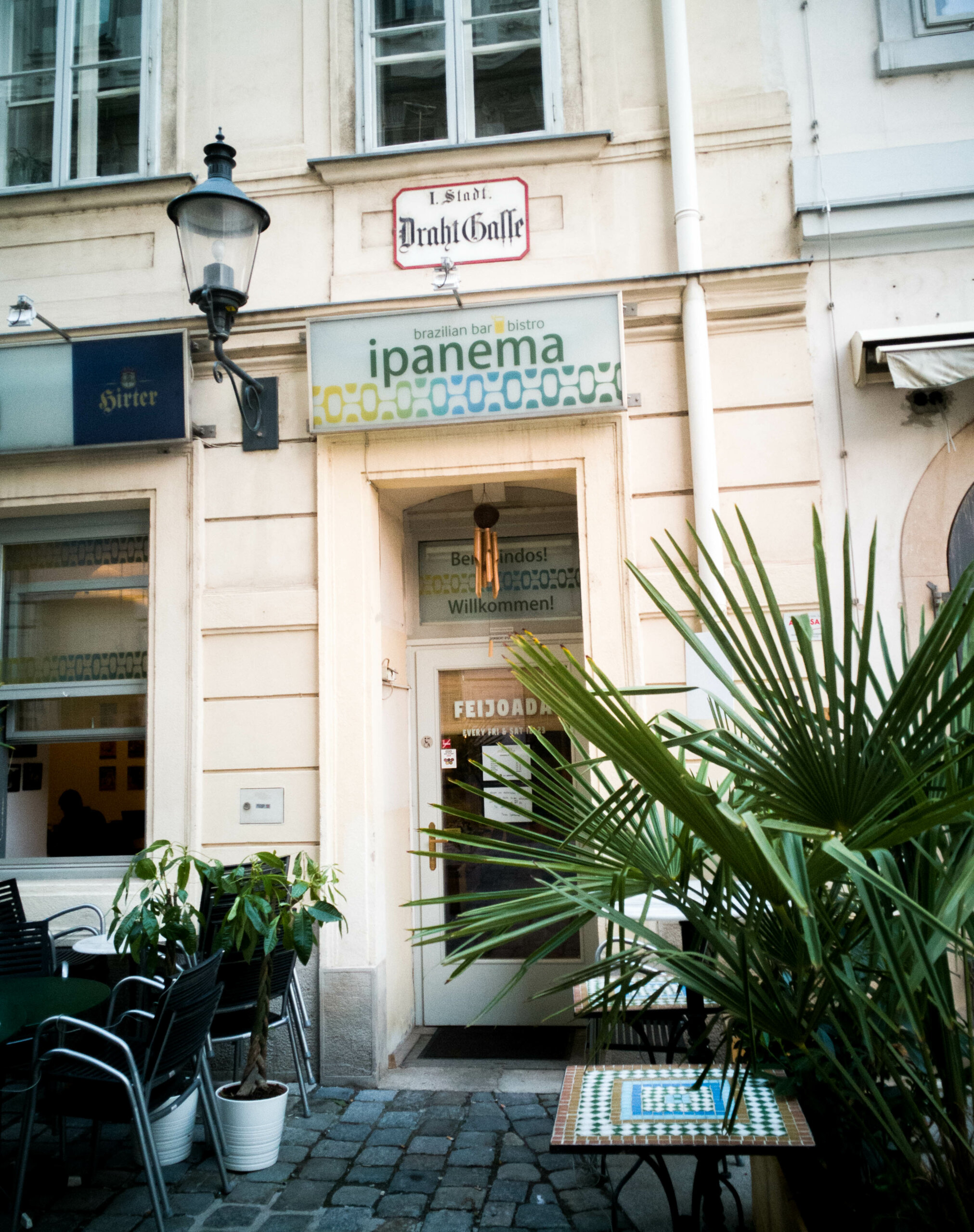 Ein brasilianisches Restaurant, in dem wir in einzigartiger Atmosphäre ein Fußballspiel von Brasilien verfolgt haben. Es gibt vegane Bohnensuppe (die an Feijoada erinnert) und natürlich Caipirinha.